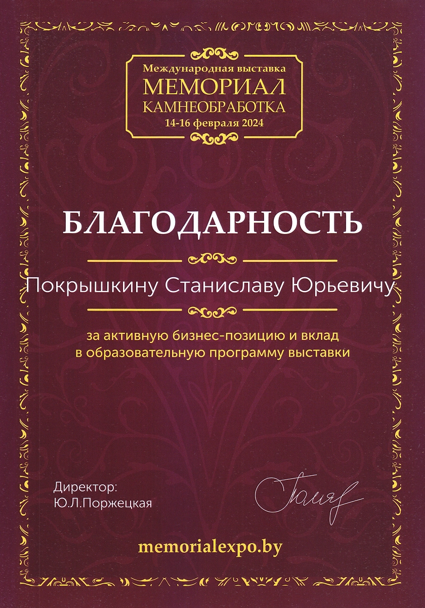 Наша компания стремится к постоянному развитию, поэтому мы регулярно посещаем специализированные выставки, посвященные мемориальной отрасли.